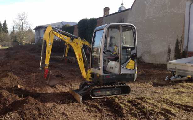 Mieten Sie einen Bagger / Minibagger für Ihre Bauarbeiten rund ums Haus. Der Bagger ist handlich und passt nahezu überall durch.