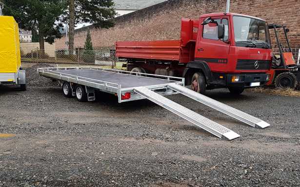Mieten Sie einen Autotransportanhänger für den Transport Ihres PKW oder auch Busses. Anhänger mit Seilwinde.