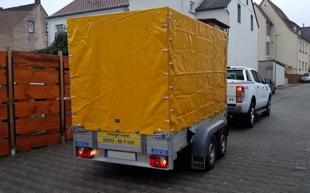 Mieten Sie einen geschlossenen Tandem-Anhänger mit Plane für den Umzug oder sonstigen Transport der Wettergeschützt sein soll. Als 2-Achser ist er besonders stabil im Transport.