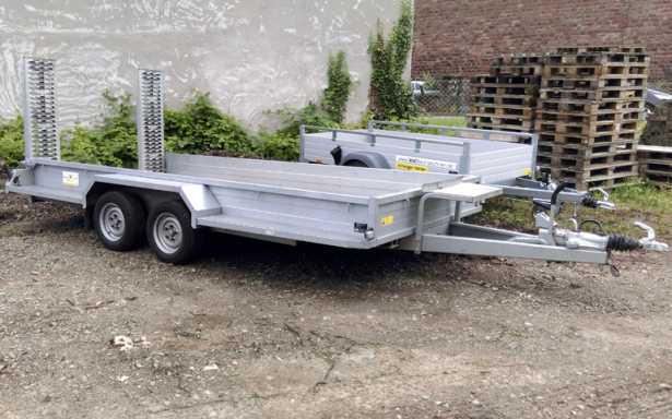 Wir haben auch andere Anhänger im Programm: z.B. kleiner 1300Kg, Tandemanhänger mit Plane oder 2,7 Tonnen Kipper (elektrisch) . Mieten Sie hier Ihren Baumaschinentransporter bei Wall Baumaschinen.