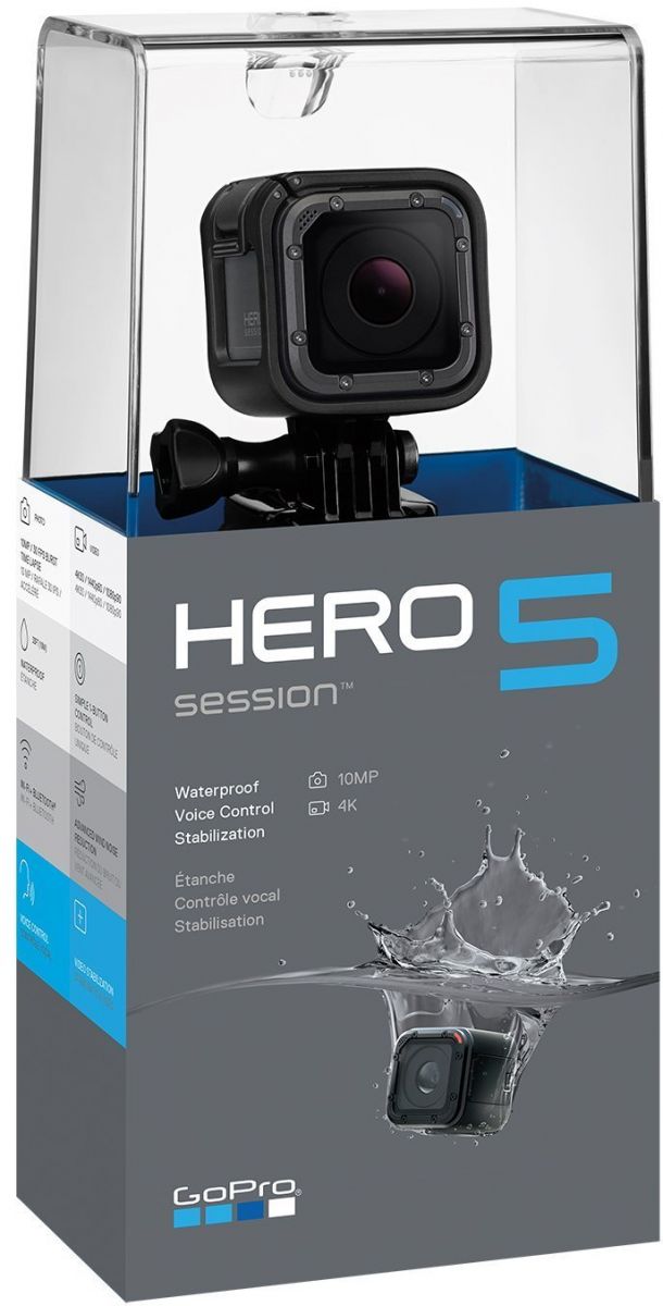 Sieh die Welt mit anderen Augen mit der HERO5 Session. Beeindruckendes Video in 4K, 1-Tasten-Komfort und Sprachsteuerung machen die HERO5 Session zur wohl ultimativen Kombination aus Performance und kompakter Größe. Und dank flüssiger Bildstabilisierung, wasserdichtem Design und Robustheit für alle Umgebungen lässt sich das Leben überall aus der eigenen Perspektive aufnehmen. Wenn es Zeit zum Bearbeiten und Teilen ist, lädt die HERO5 Session die Aufnahmen automatisch zum GoPro Plus Cloud-Konto hoch, für einen einfachen Zugriff vom Smartphone aus.1 Mit Quik™, der Bearbeitungs-App von GoPro, lassen sich anschließend Video-Clips erstellen, die rundum beeindrucken. HERO5 Session – das Leben aus einer neuen Perspektive.